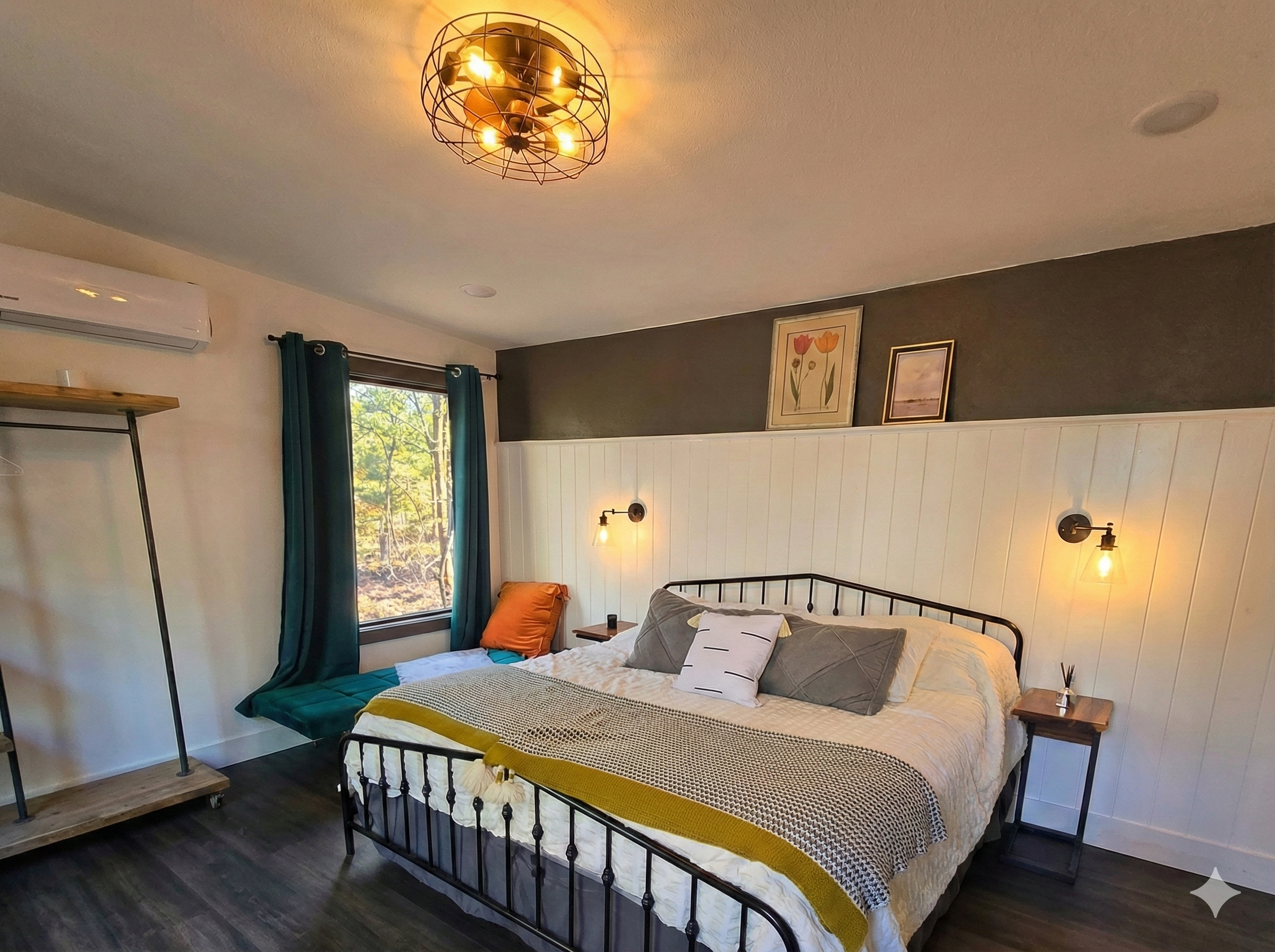 Cabin 2: King bed with private deck, coffee station and full bathroom